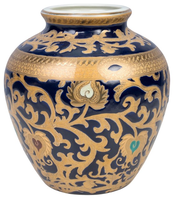 Cute Navy And Gold Tapestry Porcelain Flower Vase 8 Asian