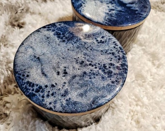 Handmade Dark Navy Blue Stripe Ceramic Canister Set Tea Coffee