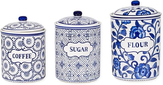 Amazon Com Drew Derose Blue White Patterned Ceramic 3 Pc Canister