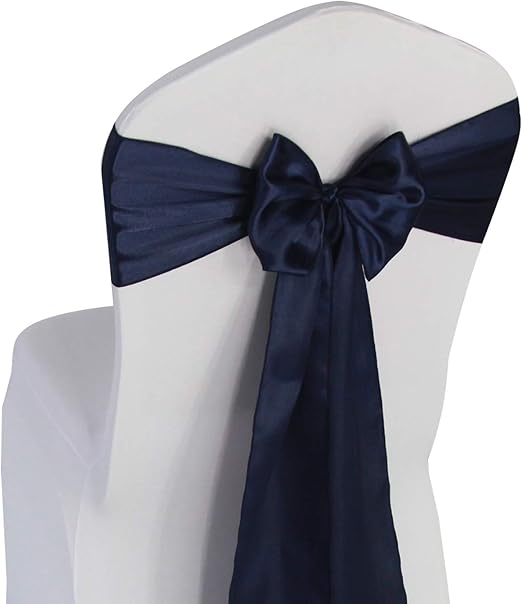Vlovelife Navy Blue Satin Chair Sashes Bows Back Tie Ribbon