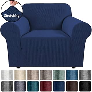 Deconovo Strechy Jaquard Chair Covers Navy Blue Chair Slipcover