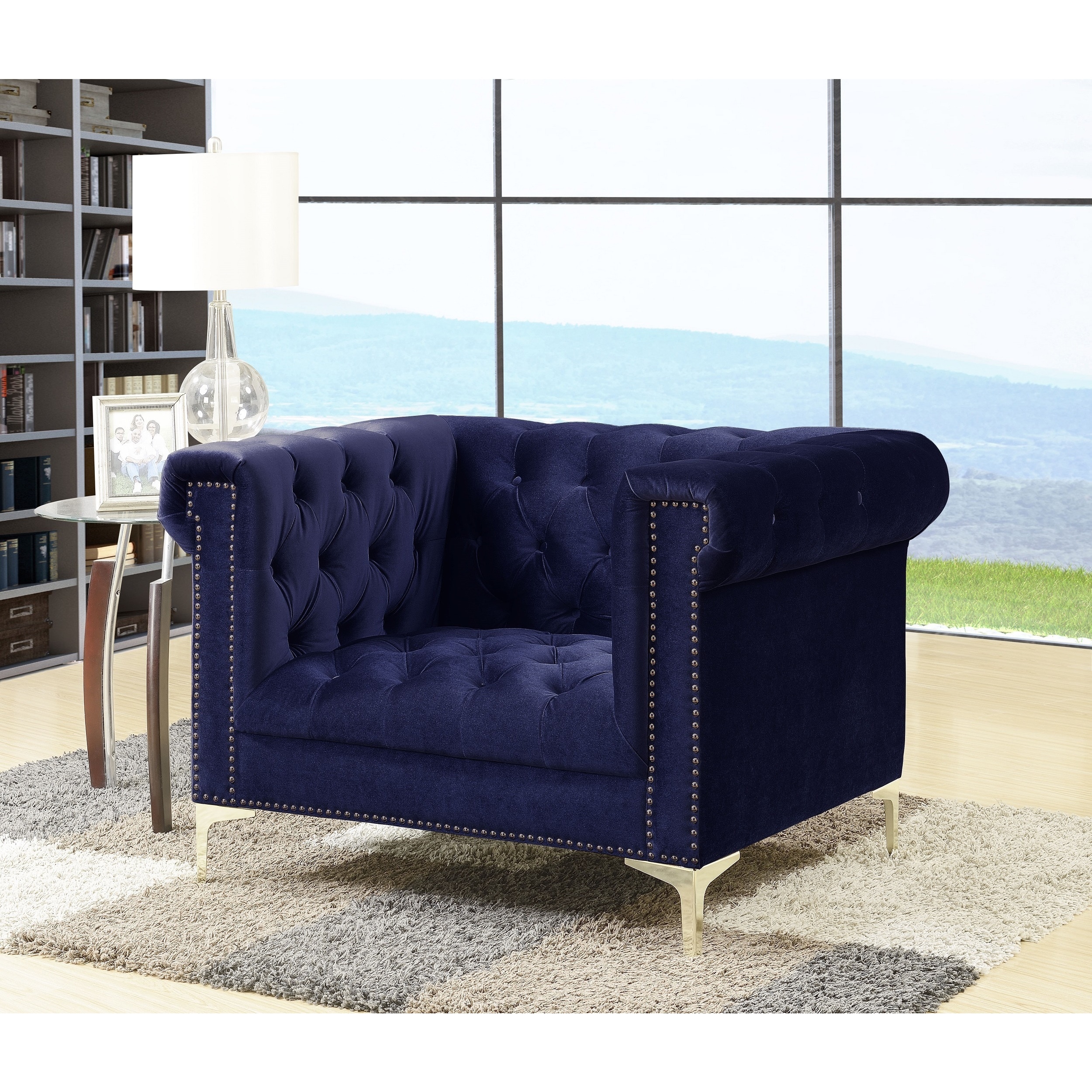 Reese Navy Blue Button Tufted Accent Chair With Gold Legs From