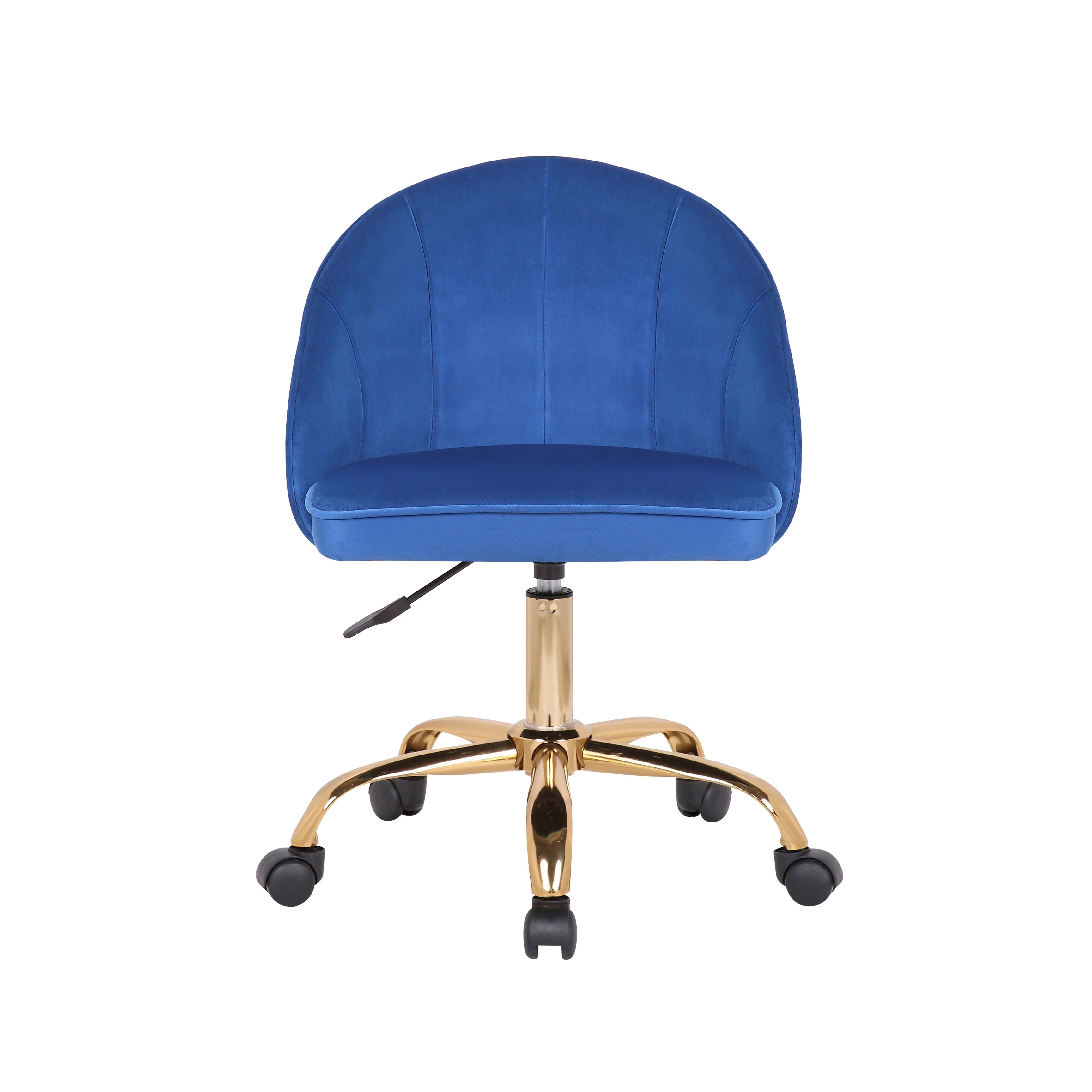 Navy Blue Velvet Office Swivel Chair With Gold Base Marley