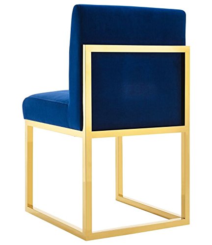 Blue Navy Velvet Modern Boxy Geometric Dining Chair Gold Legs