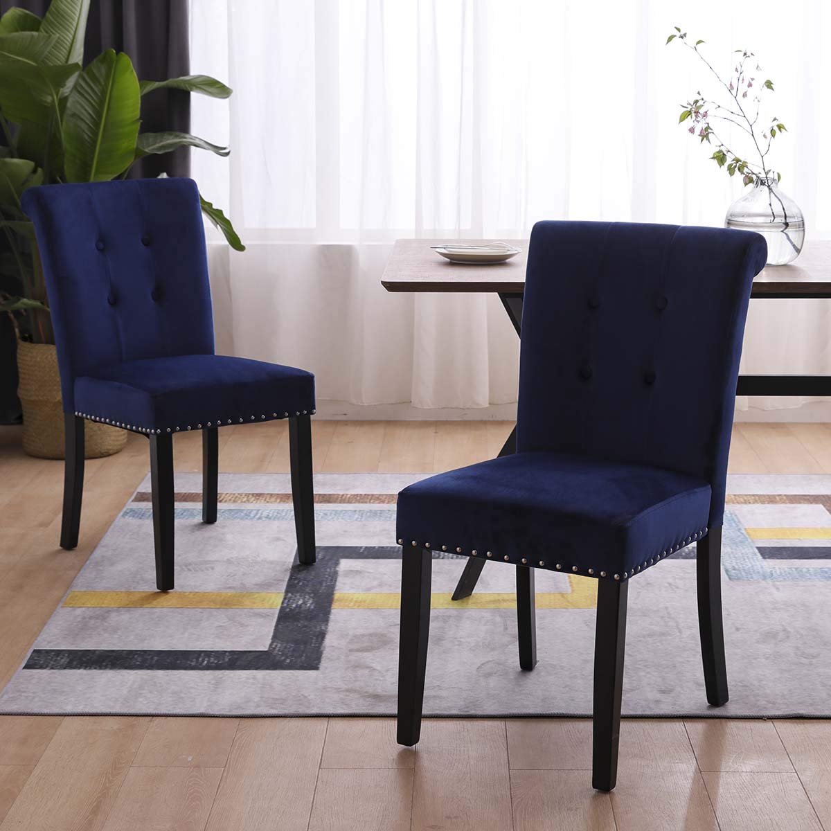 Duke Tufted New Velvet Dining Chairs Set Of 2 Navy Blue