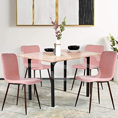 Navy Blue Dining Set 1 Extendable Wooden Table And 4 Pink Fabric