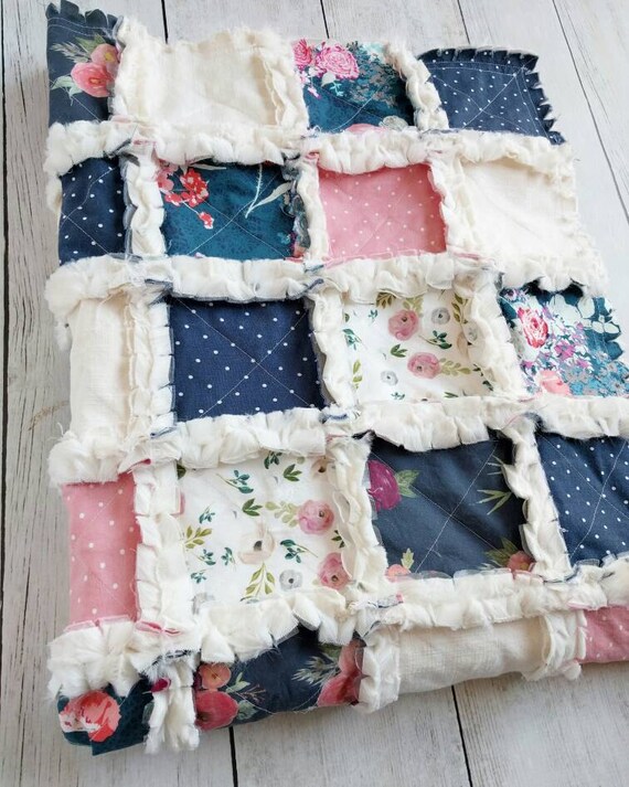 Navy Blue And Blush Floral Quilt Etsy