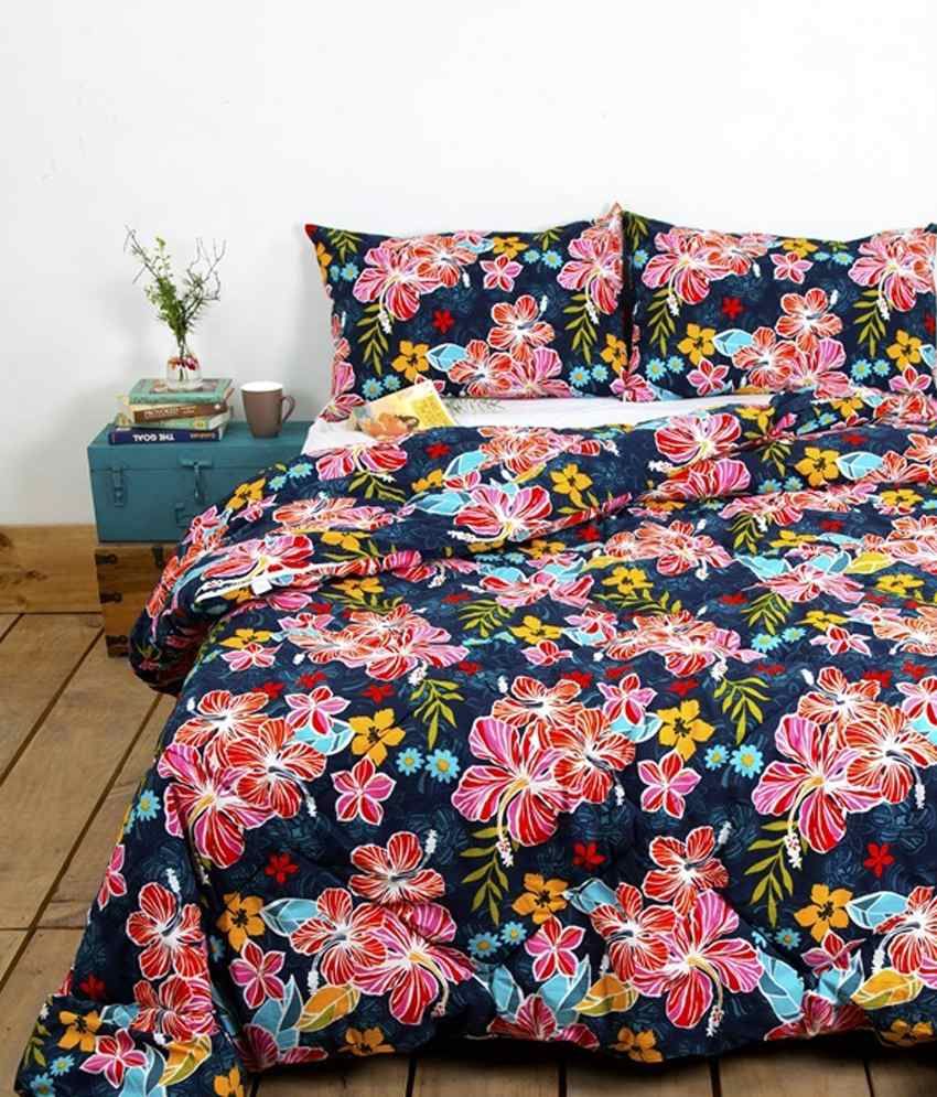 Ocean Collections Red Navy Blue Floral Cotton Comforter With 2