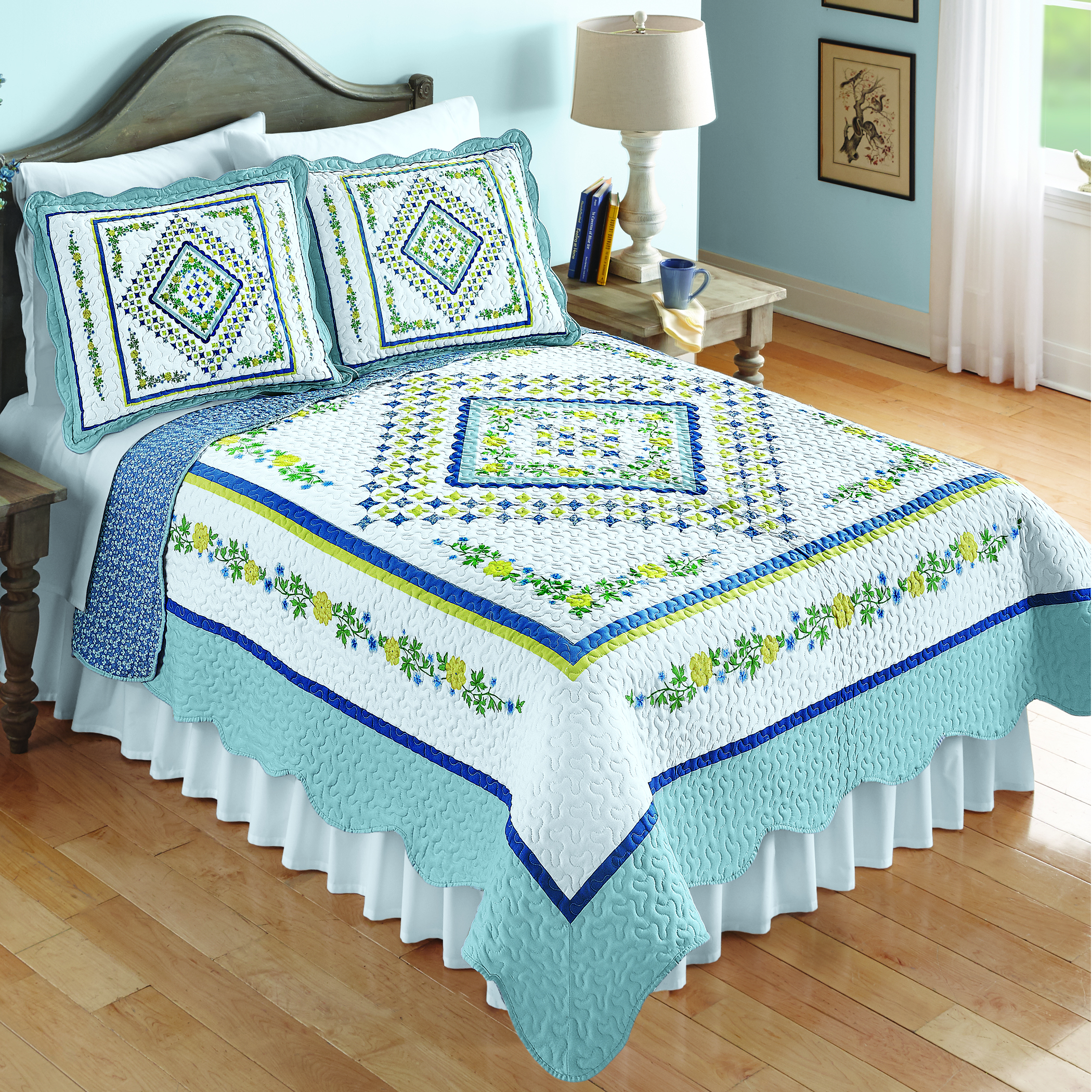 Prairie Blossom Blue Diamond Floral Quilt Collections Etc