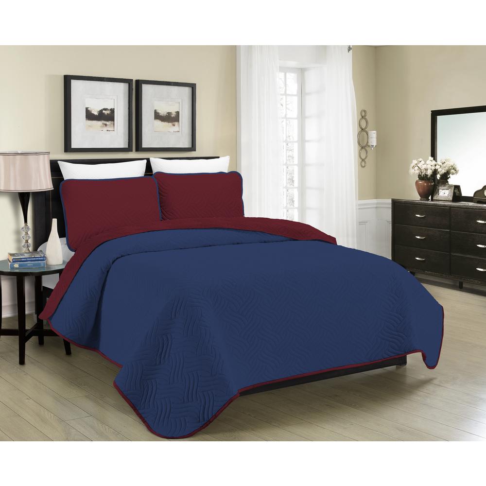 Morgan Home Allison Reversible 3 Piece Burgundy Navy King Quilt
