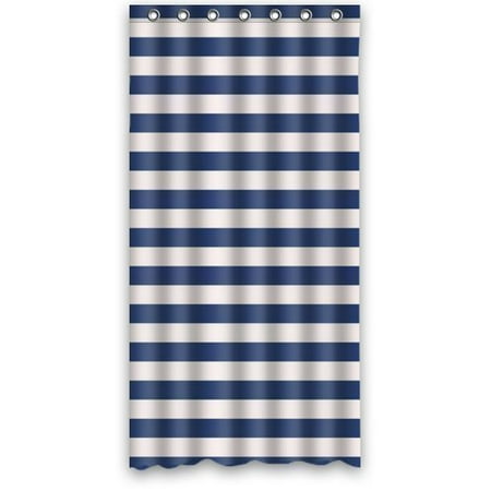 Erehome White And Navy Blue Stripe Shower Curtain Polyester Fabric