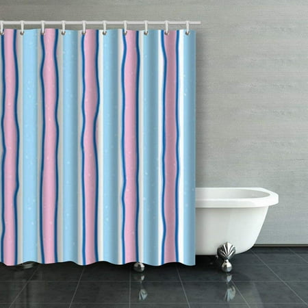 Deerreed Navy Blue Stripe Shower Curtain Waterproof Mildew Free