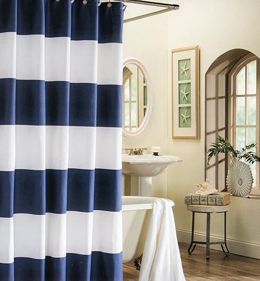 Striped Shower Curtain Nautical Marine Style Navy Blue And White