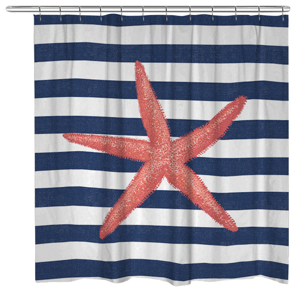 Starfish Stripe Shower Curtain Beach Style Shower Curtains