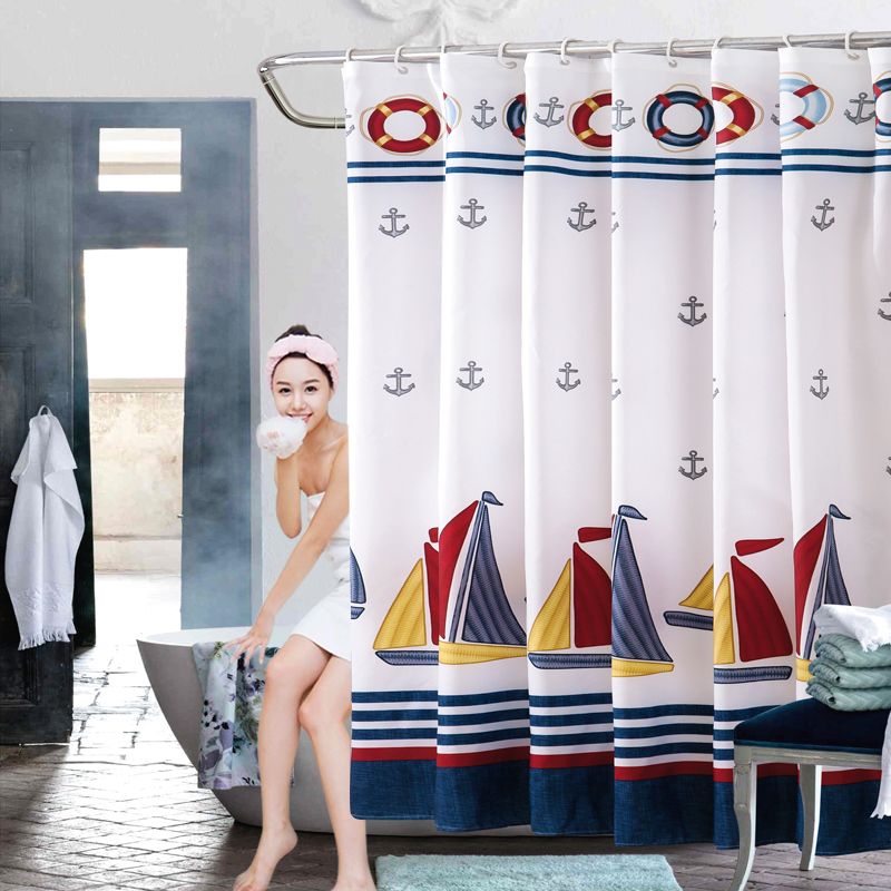2020 Summer Style Nautical Shower Curtain Sailing Boat Navy Blue