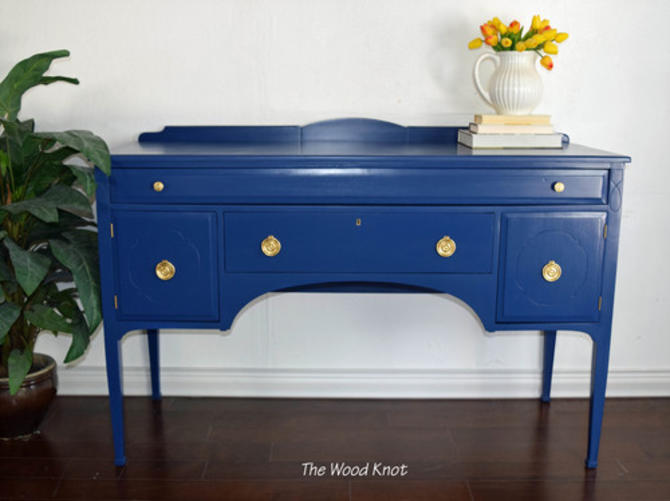 Sold Painted Navy Blue Buffet Sideboard Entryway By Uturndesign