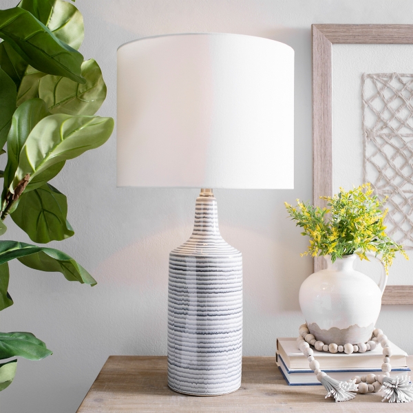 Marisa Farmhouse Light Gray And Navy Striped Ceramic Table Lamp