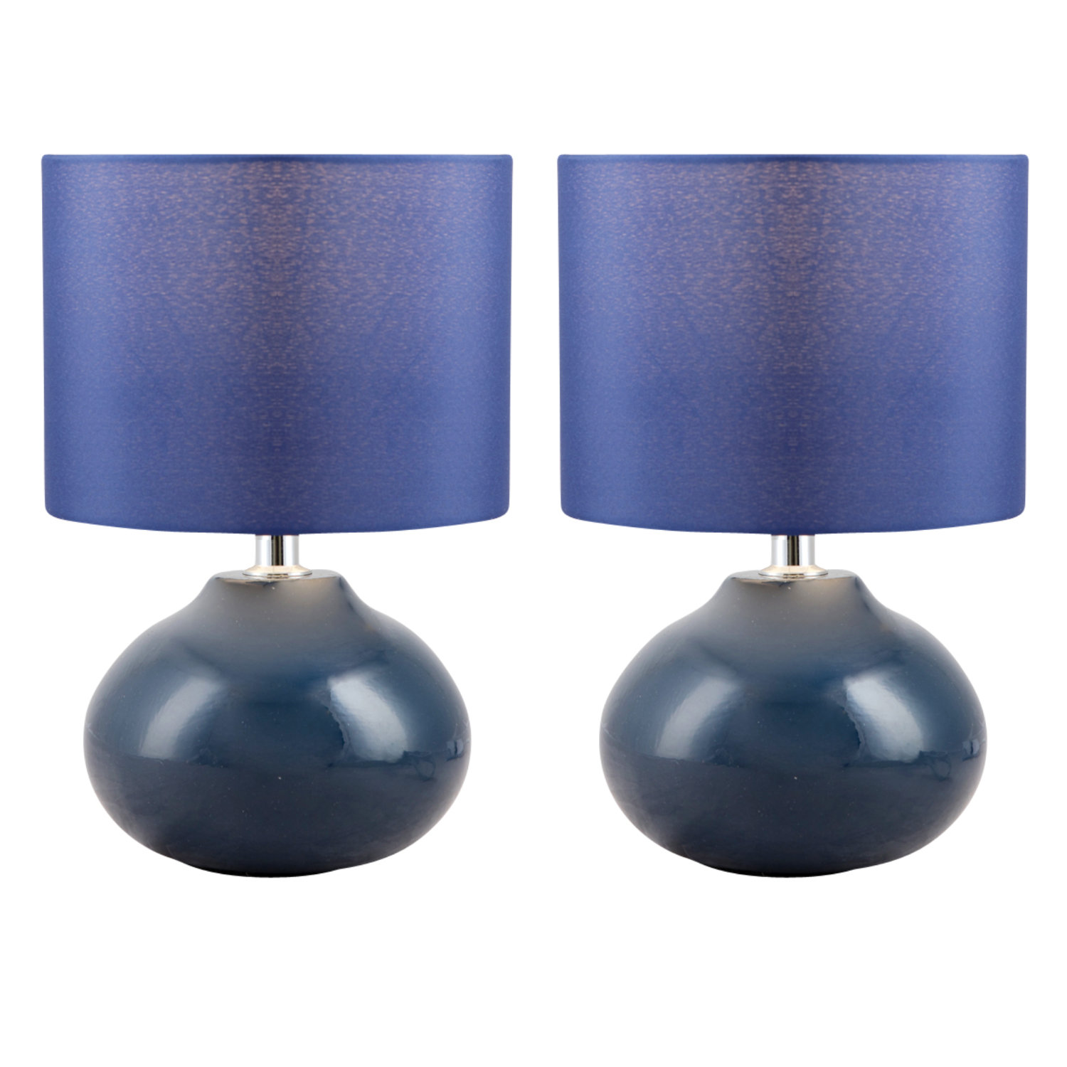 Pair Of Small Navy Dark Blue Ceramic Table Lamps Lights Bedside