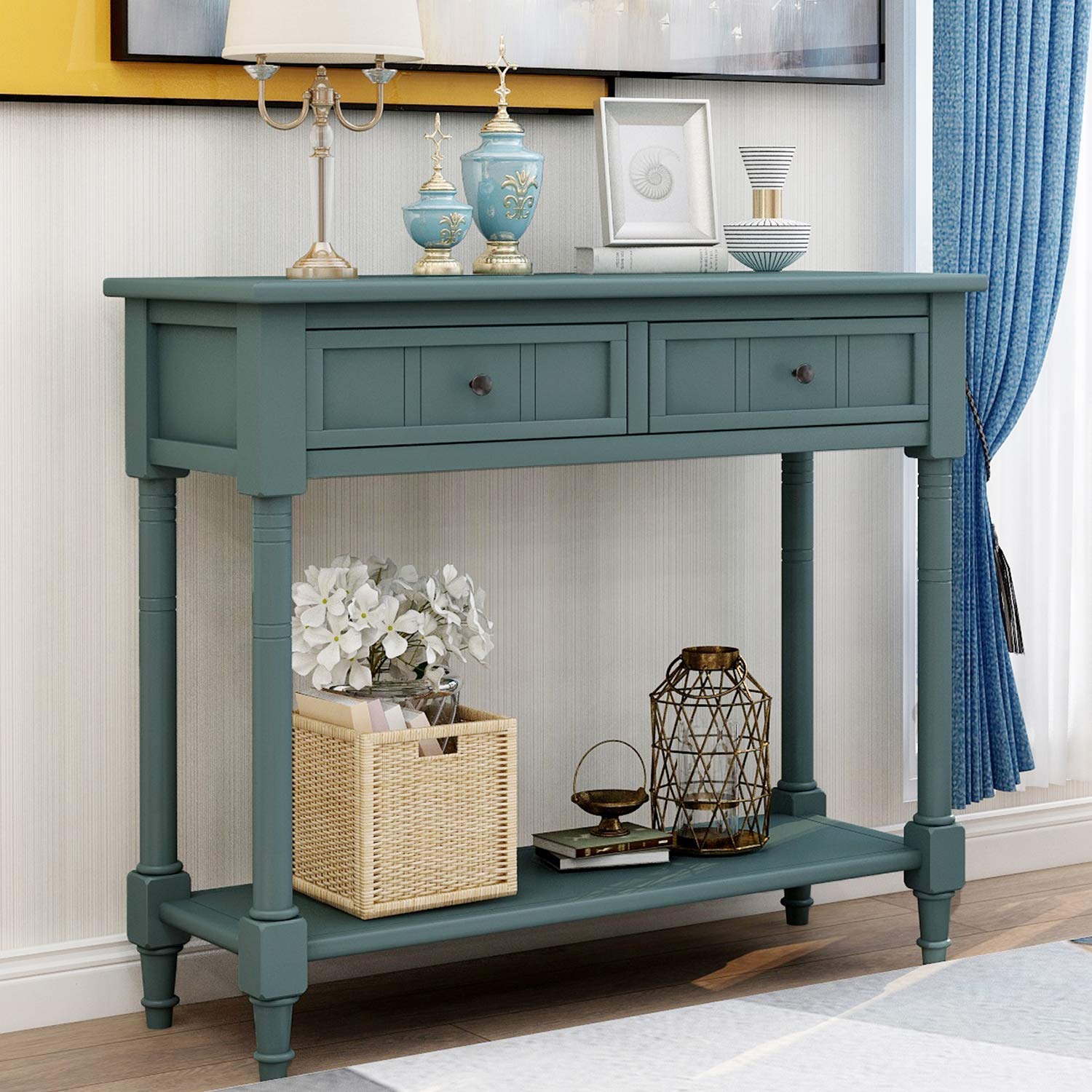 Amazon Com Wood Console Sofa Table With Drawers And Bottom Shelf