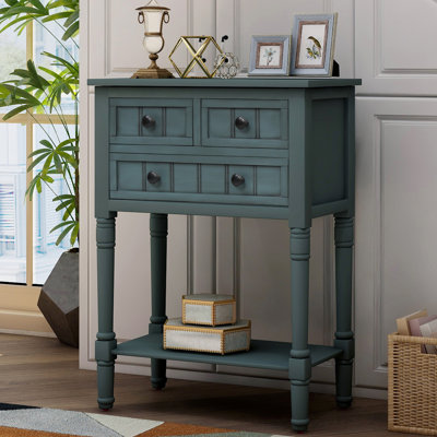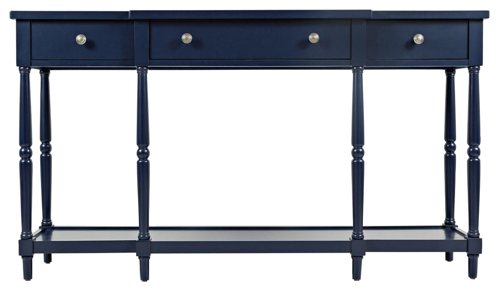Shop Breakfront Detailed Wooden Console Table With 3 Drawers Navy