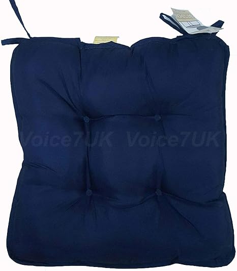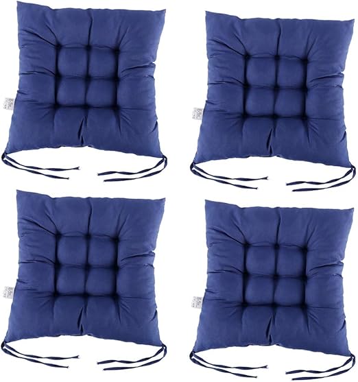 4 X Cotton Chair Cushion Seat Pad With Ties Navy Blue