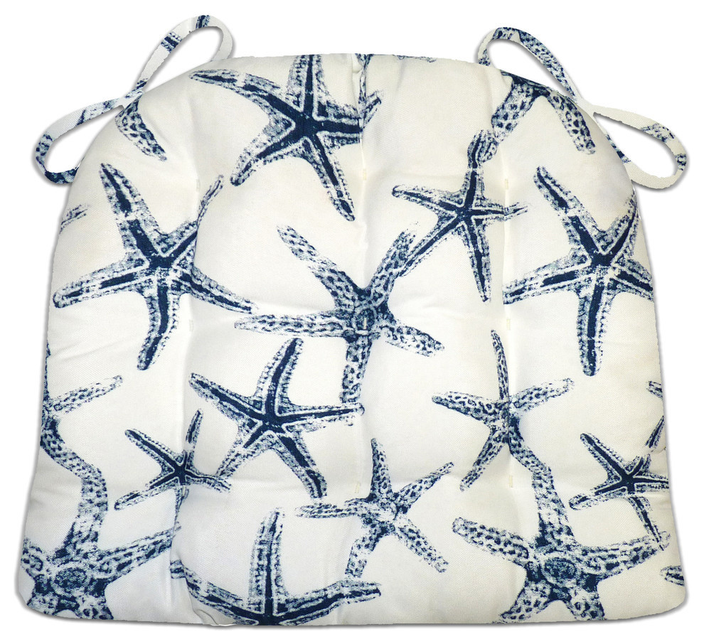 Sea Shore Starfish Navy Blue Indoor Outdoor Dining Chair Pads