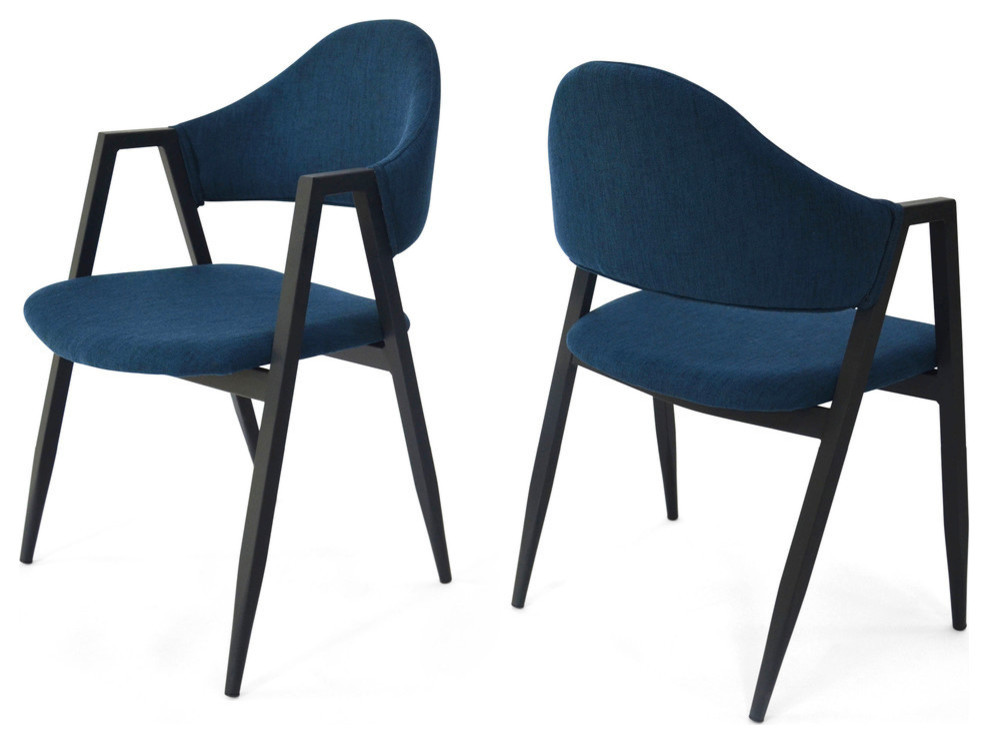 Etta Chair Dark Blue Velvet Upholstered Dining Chair With Black