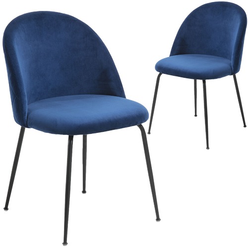 Set Of 2 Velvet Chestnut Curl Chair Navy Black Legs Bothy Blue