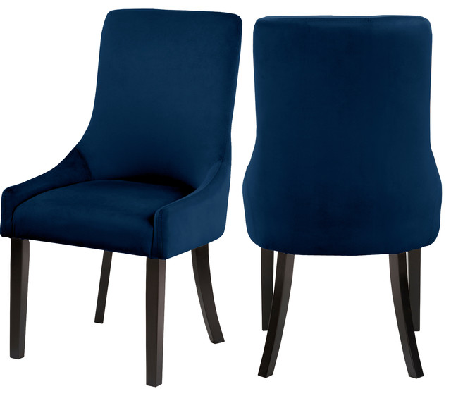 Landon Traditional Navy Blue New Velvet Dining Chairs With Gloss Black Finished Legs Set Of 2 Dining Chair