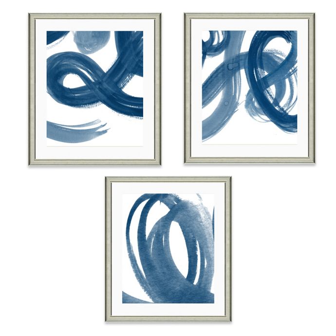 100 Handpainted Navy Framed Art Set Of 3 Bobs Com