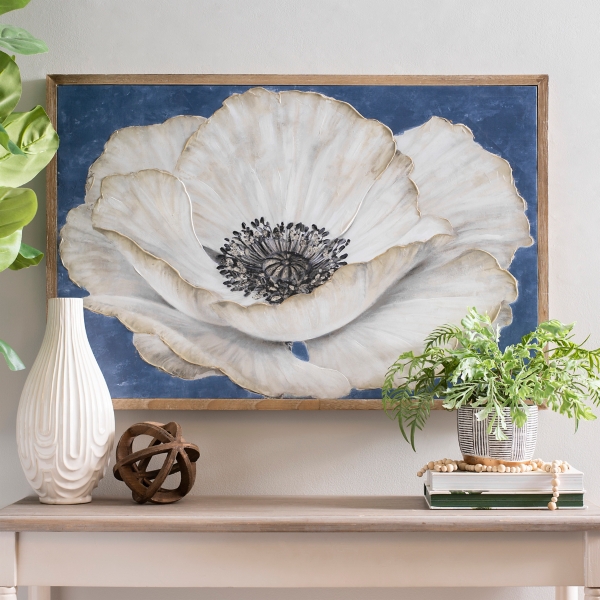 White Flower On Navy Framed Canvas Art Print Kirklands