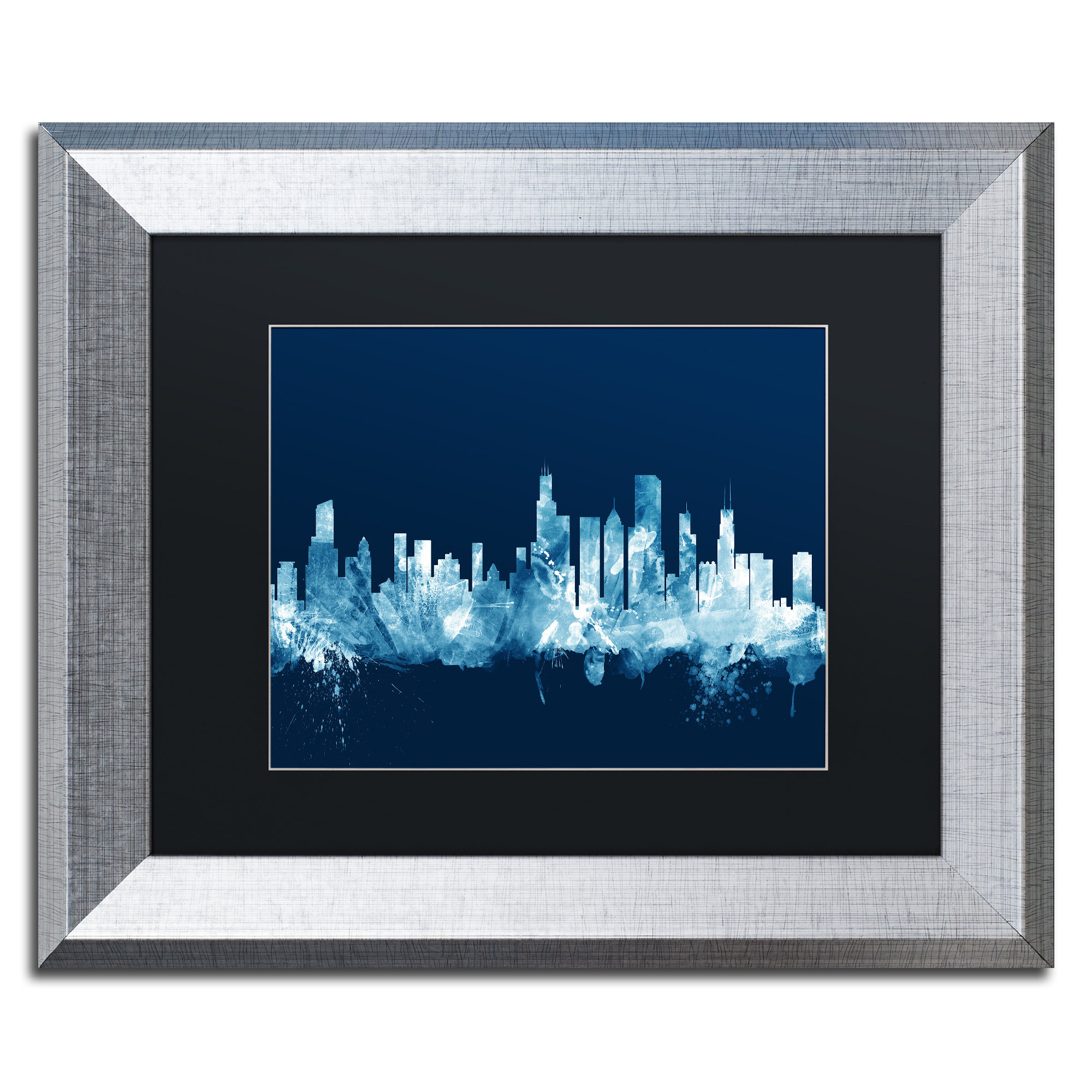 Trademark Art Chicago Illinois Skyline Navy Framed Graphic Art