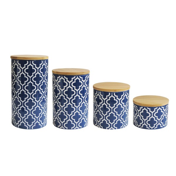 Shop Quatrefoil Navy Set Of 4 Canisters Overstock 20088712