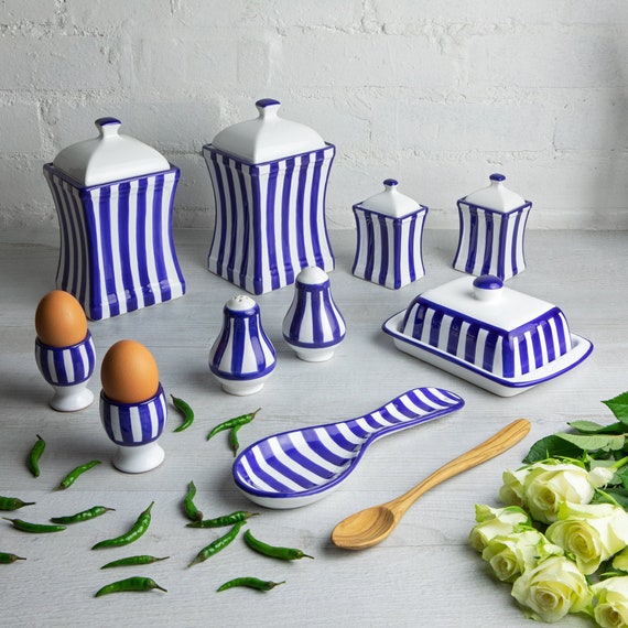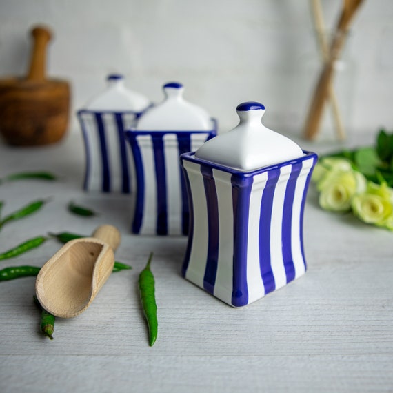 Navy Blue Stripe Spice Jars Kitchen Canisters Storage Etsy