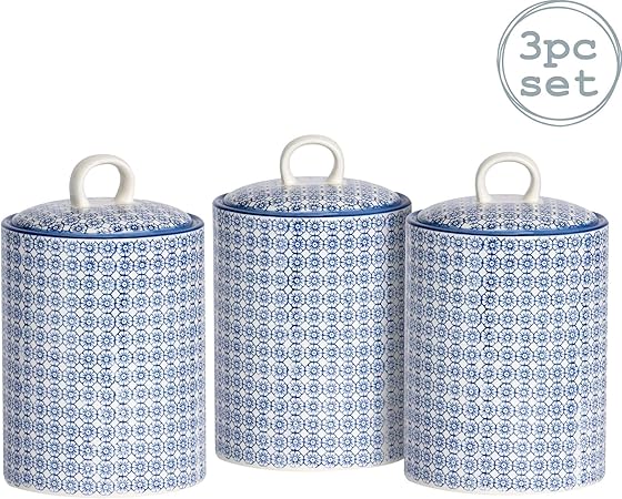 Nicola Spring 3pc Hand Printed Biscuit Barrel Set Porcelain