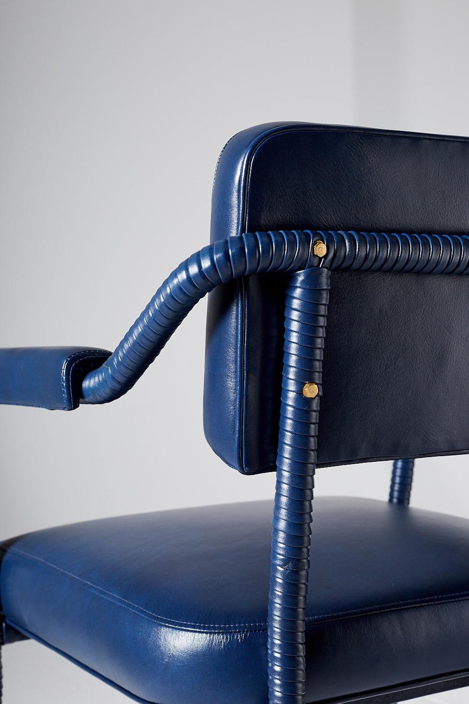 Saddle Dining Chair Antique Navy Leather Michael Murphy Home