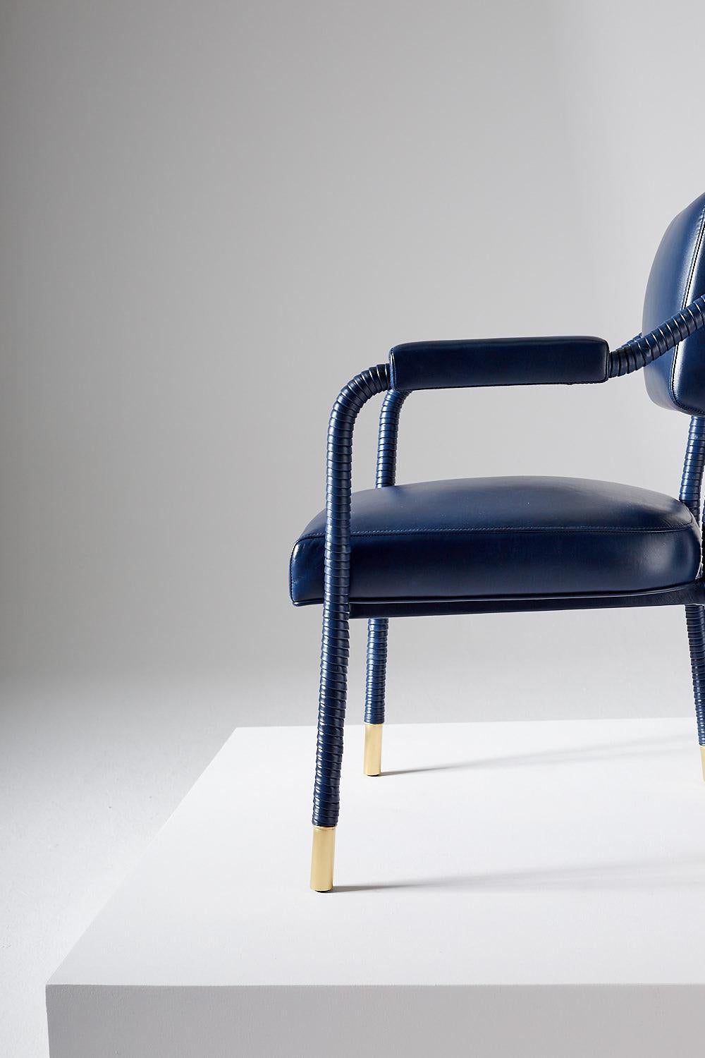 Navy Leather Dining Chair With Gold Hardware Legs Furniture