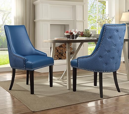 18 Inch Faux Leather Dining Chair Set Of 2 Navy Blue By Walker