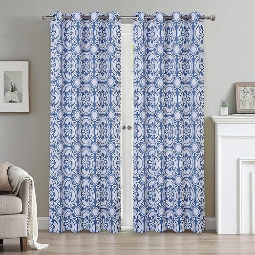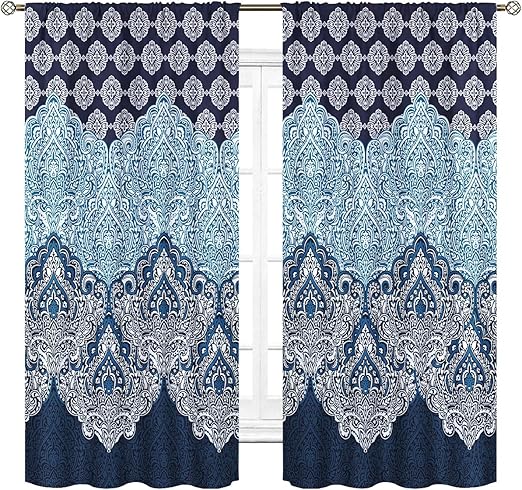 Set 2 Navy Blue White Medallion Curtains Panels Drapes 84 Inch
