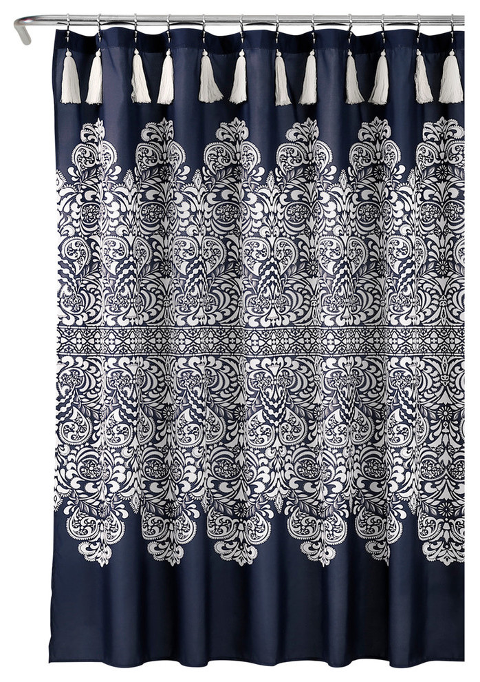 Amazon Com Lush Decor Navy Boho Medallion Shower Curtain Fabric