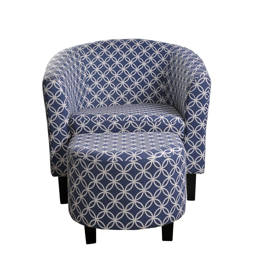 Unbranded Paisley Dark Blue Tub Chair With Ottoman 92004 16db
