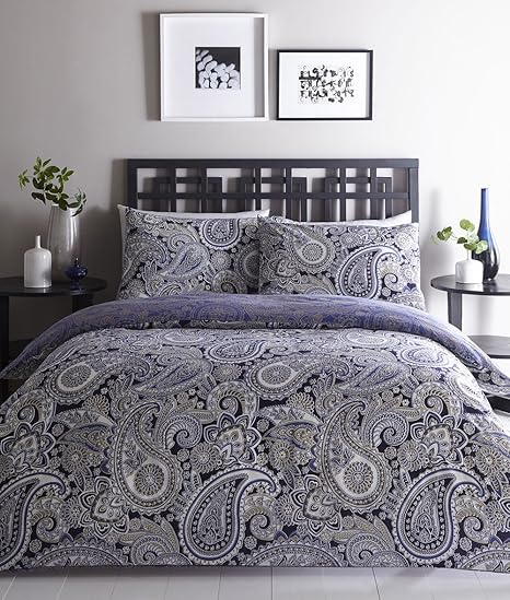King Size Duvet Set Navy Ethnic Paisley Printed Reversible King