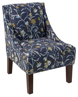 Quinn Swoop Arm Accent Chair Navy Floral Linen One Kings Lane