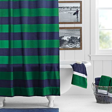 Navy Green Rugby Stripe Teen Shower Curtain Pottery Barn Teen