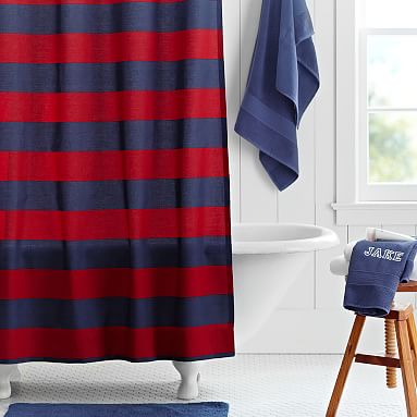Navy Red Rugby Stripe Teen Shower Curtain Pottery Barn Teen