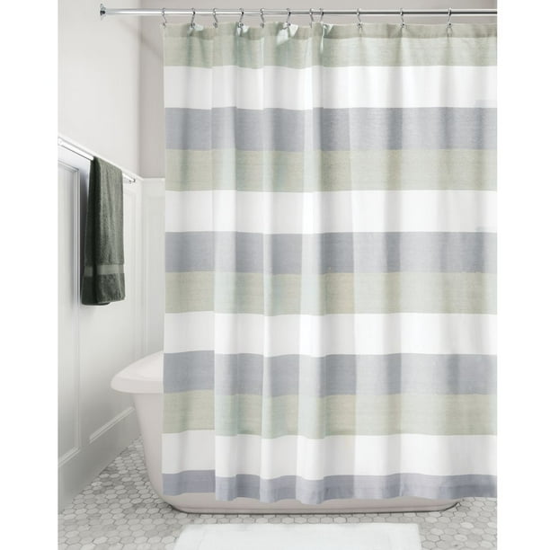 Idesign Wide Multi Stripe Fabric Shower Curtain Navy And Sage