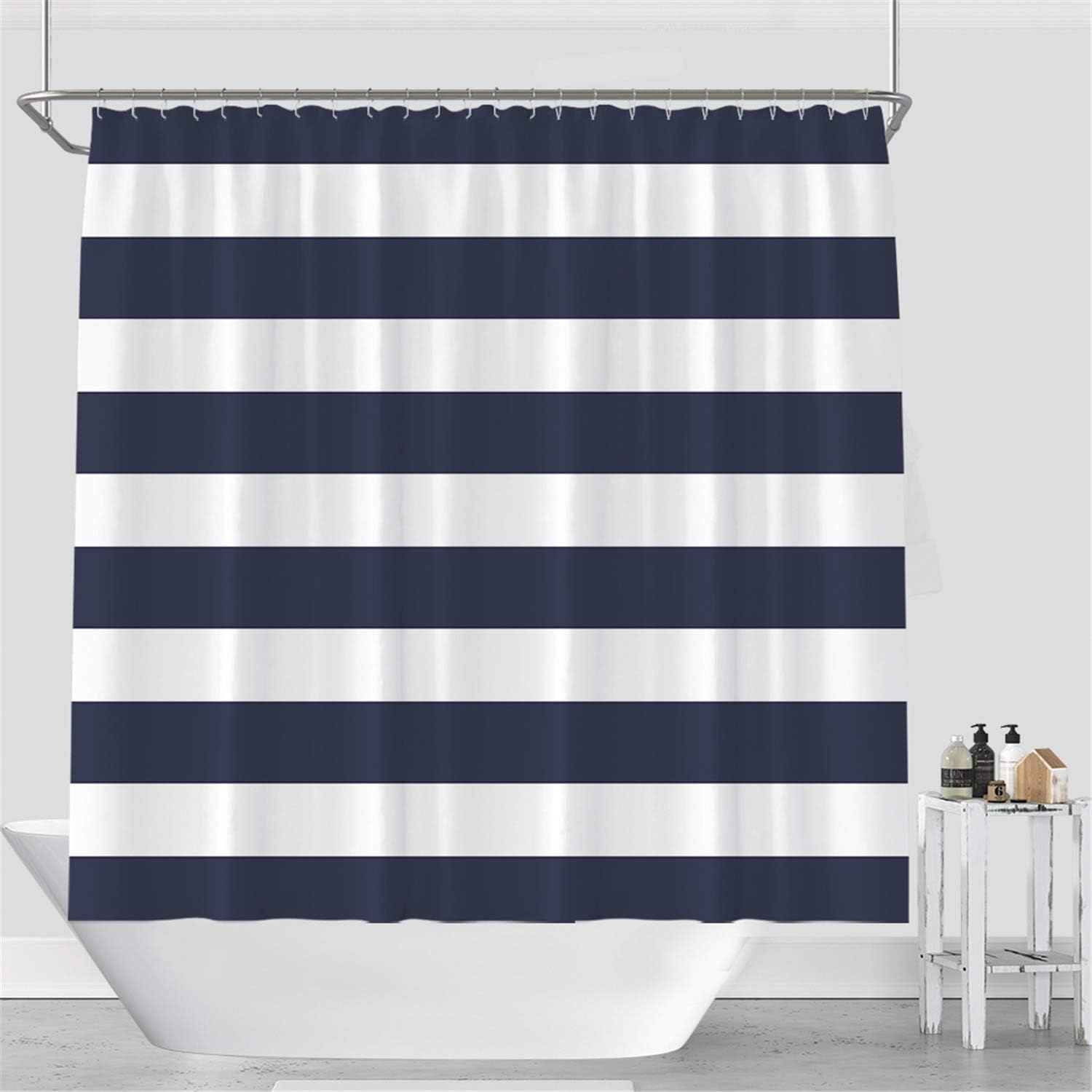 Deerreed Navy Blue Stripe Shower Curtain Waterproof Mildew Free