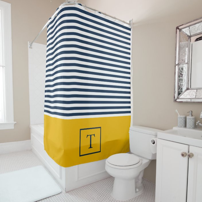 Monogram Stripe Shower Curtain Navy White Zazzle Com