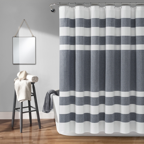 72 X72 Elephant Stripe Shower Curtain Single Navy Lush Dcor