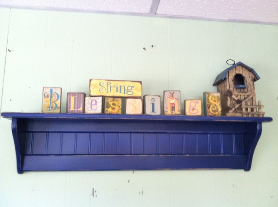 Wood Shelf Distressed Navy Antiqued Wood Wall Shelf Primitive Etsy